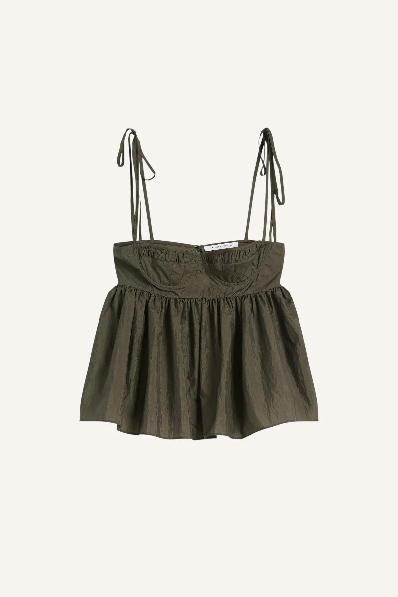 A timeless staple in your wardrobe, the Alora top from Cecilie Bahnsen is crafted from recycled shiki light taffeta with a lined bodice. Its fitted silhouette gently flares into a soft peplum, while fully adjustable bow straps ensure a perfect fit. Style it with the Allegra skirt for an effortlessly elegant look.