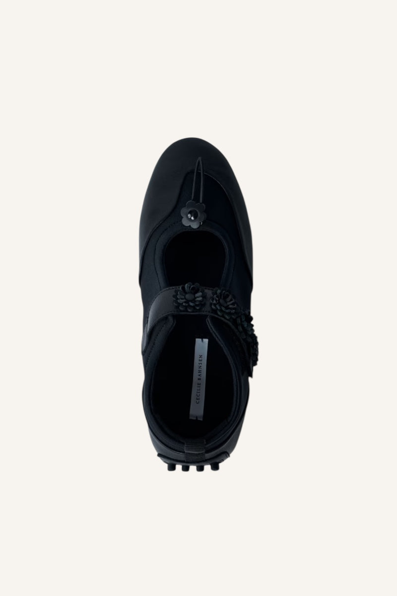 A Mary Jane that can only be Cecilie Bahnsen’s; the Bess flat. Made from black neoprene with floral detailing across the strap, as well as a modern drawstring detail, the silhouette innovates on girlish nostalgia. Style with our wool knee long socks for a cute winter look.