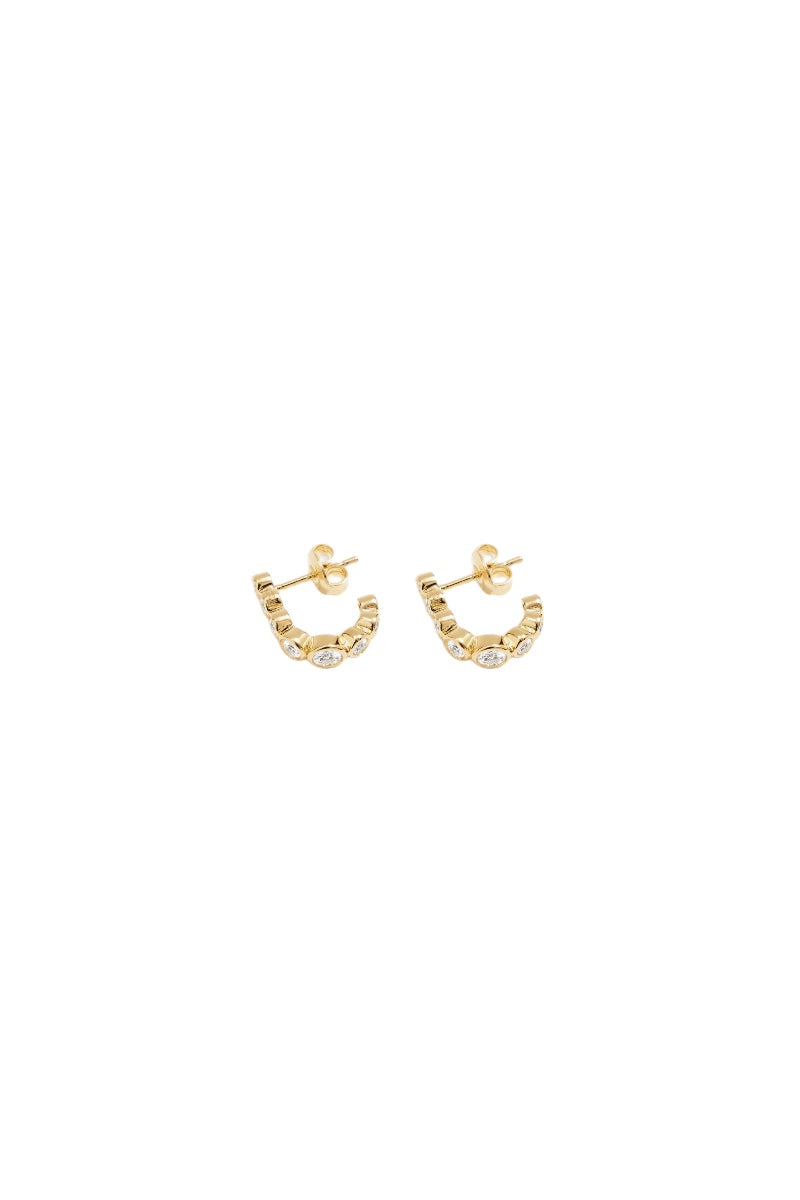A pair of elegant mini hook earrings in 925 sterling silver. These earrings are adorned with stunning crystal white brilliant-cut throughout. Perfect for upscaling both your everyday look and party outfits.