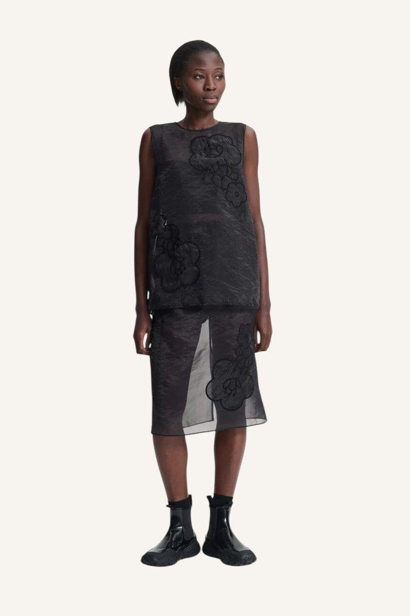 The Alba top from Cecilie Bahnsen is both elegant and contemporary. Designed in a flowing tank silhouette from delicate liquid Myrtia, it features a gentle rounded neckline and a detailed bow fastening at the back. Perfect on it's own but can also be styled with Bambi Skirt for a elevated look.