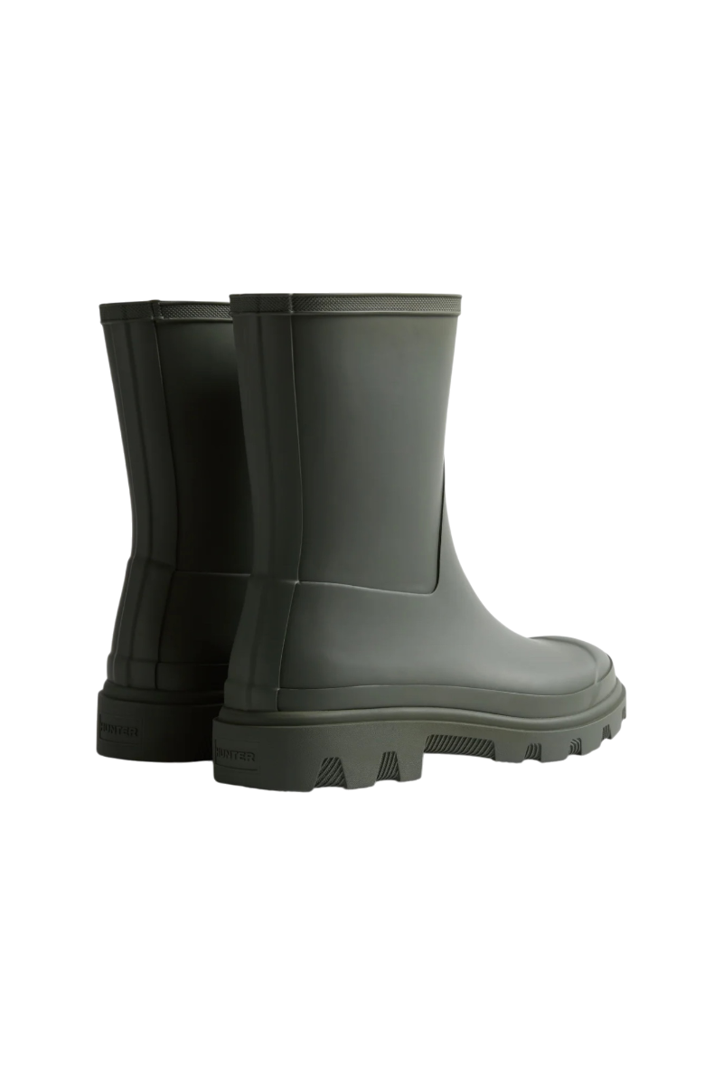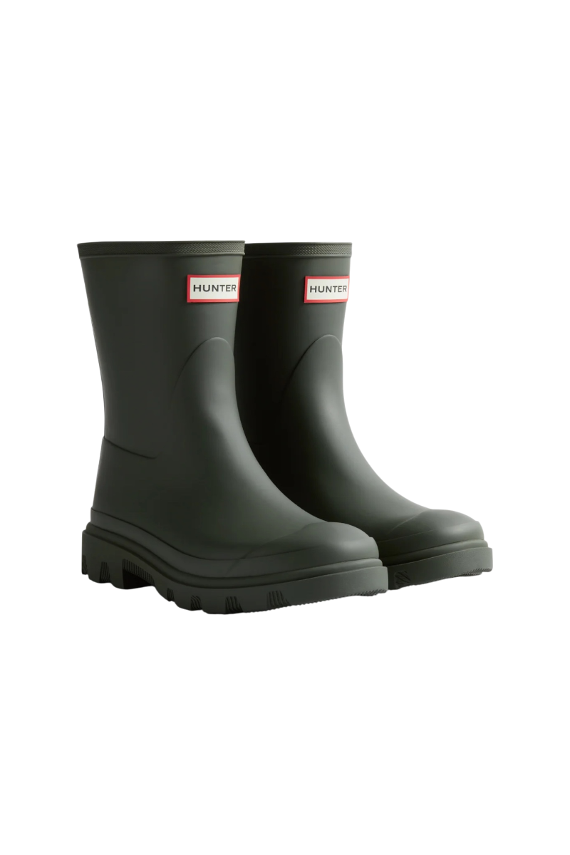 Fully waterproof and built for everyday wear, the Unisex Downpour Short Boot in Olive from Hunter features a sleek upper, lightweight moulded outsole, and nature-inspired tread. Handcrafted and finished with a heritage topbind, it offers a modern, roomier fit around the calf.