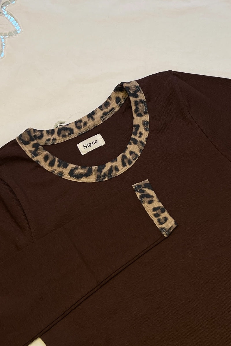 Introducing June Leo top in a new beautiful color made exclusively for Damernes Magasin. Featuring leopard-printed details on the collar and sleeve hemlines, this piece is already a true favorite at Damernes Magasin!