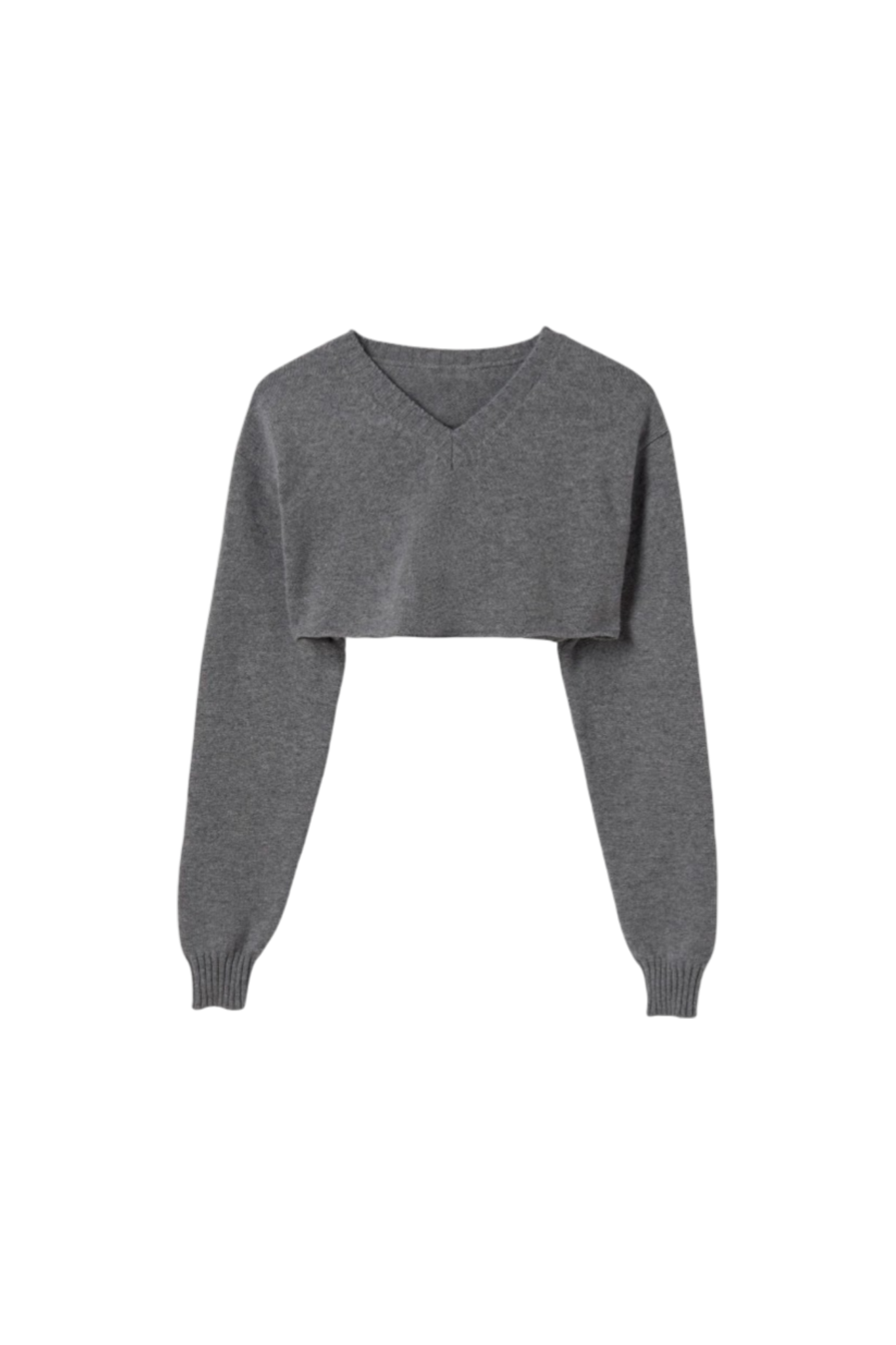 Cropped knit sweater in a cashmere-wool blend from Gimaguas. A timeless grey tone with a soft ribbed V-neck, long sleeves and a cropped fit. Finished with ribbed edges for a touch of texture, this women’s jumper is lightweight and cozy.