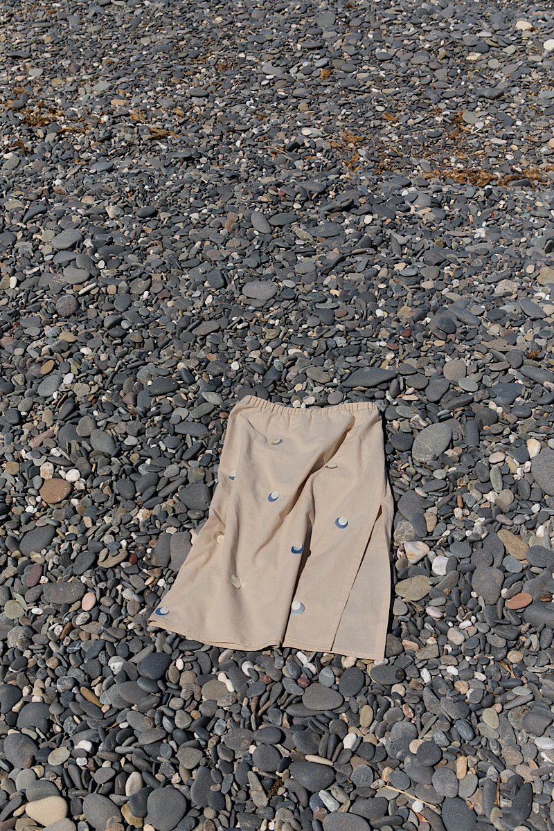 Sheer cotton voile fabric with high slit and hand sewn sequins