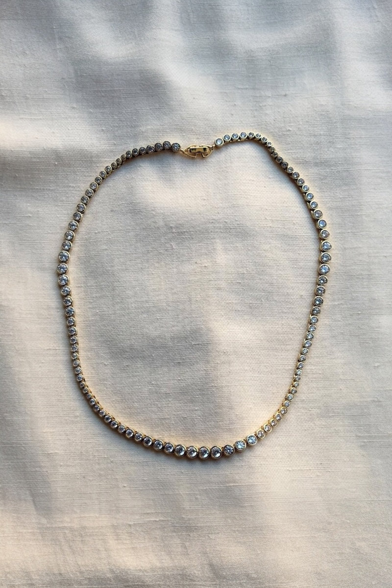 Ragbag Oda necklace is a Tennis necklace where the stones vary in size and catches the light, illuminating your neckline, crafted in 925 sterling silver.