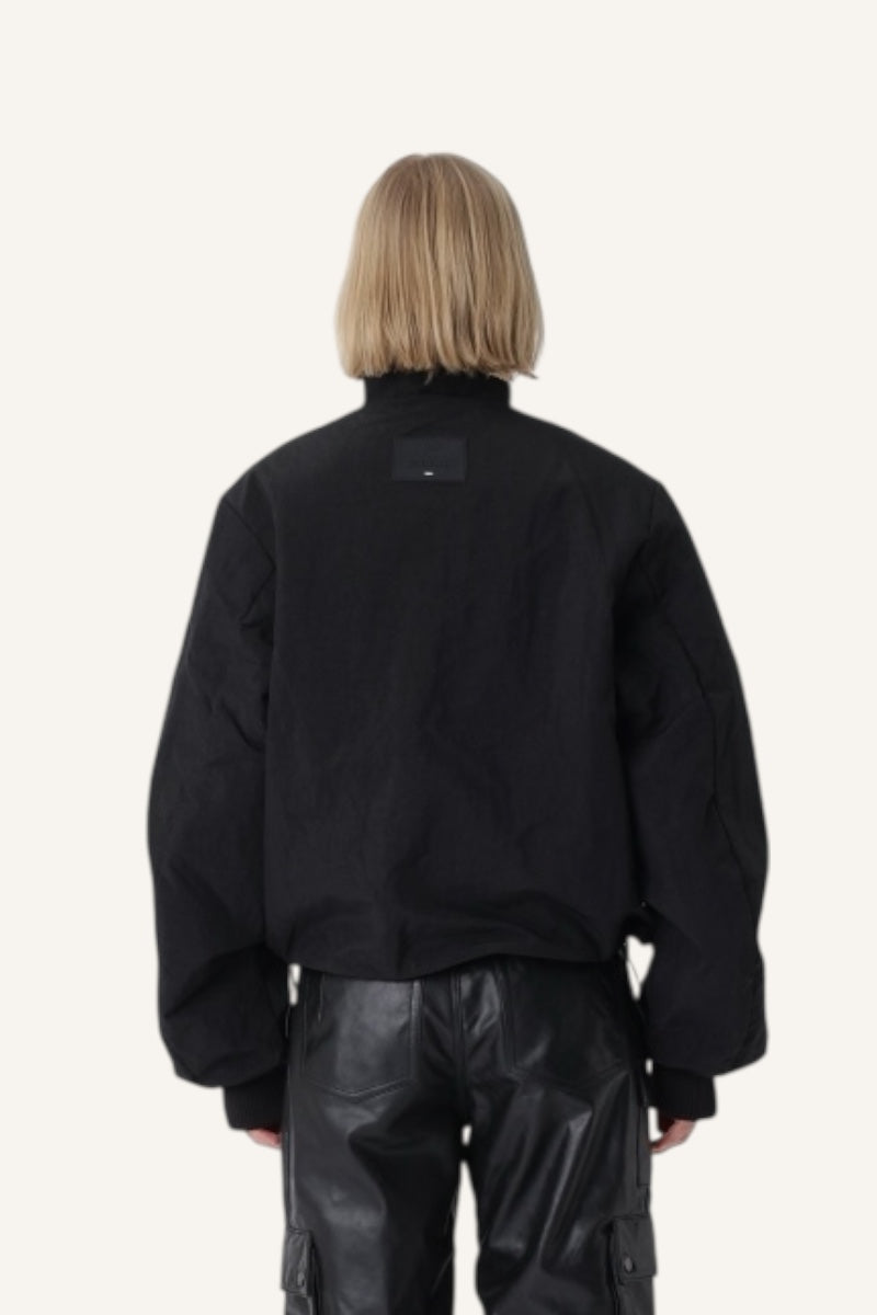 Opal bomber Jacket with adjustable waist inside and elastic for multiple fits.